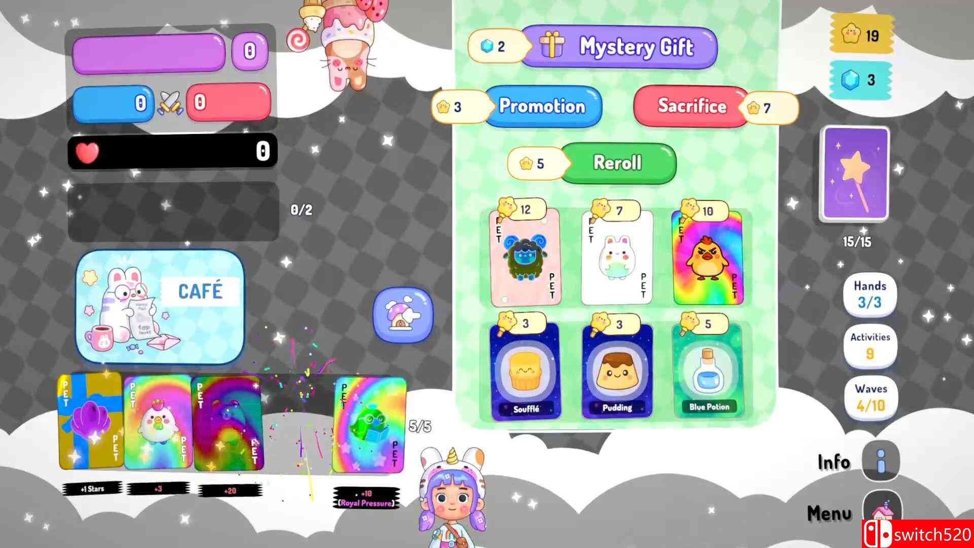 《独棋奇谋》是一款策略类(SLG)游戏,一款棋类肉鸽卡牌游戏。将卡牌打在3×3棋盘上,触发棋子效果,通过连击得分。用宠物和食物构建卡组,征服一波波独特战斗。switch520